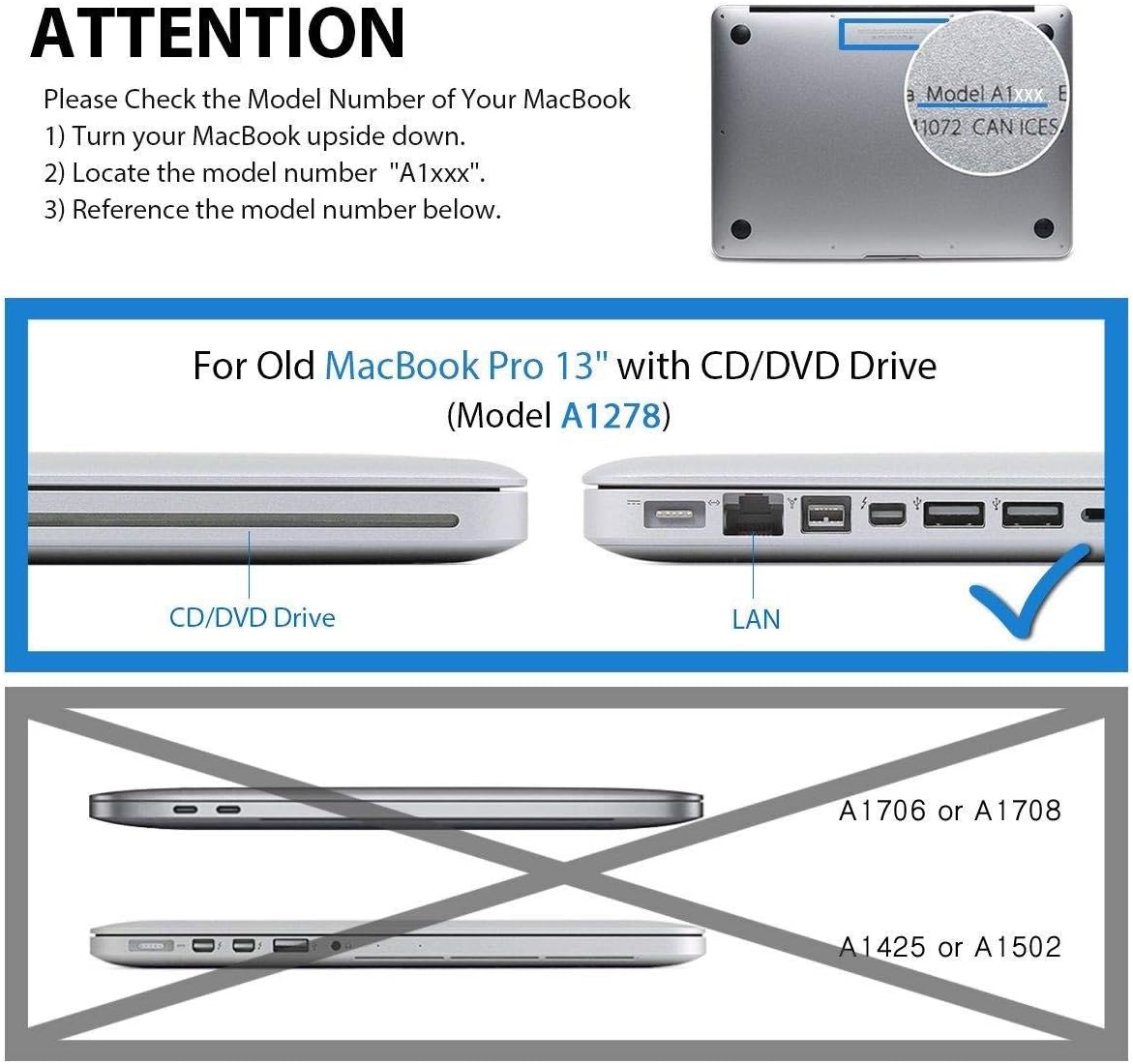 Using top quality Polycarbonate material with injection molding technology, this Lention case surpass others in durability and tenacity. It can prevent your precious device from daily scratches, shock and accident impact. Besides, it creatively adds four anti-skid pad and ventilation hole, which will greatly reduce your worrying about laptop turning hot. Product Description and Specifications Good weatherability PC, matte quicksand surface 2-piece design, full body case Raised 4-point cushions and breathable back case, facilitates heat dissipation Come with dust plugs Snugly fits the device Compatible with MacBook Pro 13.3 inch Model (A1278)Package included LENTION Sand Series Matte Hard Case Anti-dust Plugs not included.