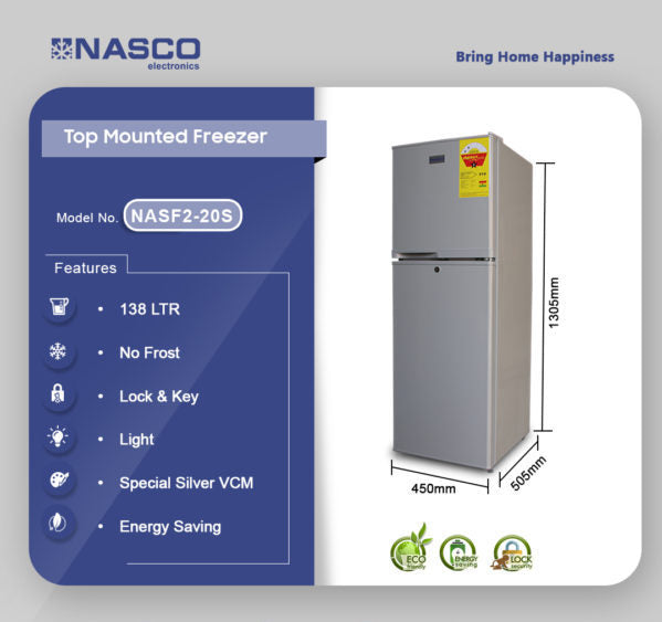 - Nasco 138LT Top Freezer Refrigerator - NASF2-20S Nasco 138LT Top Freezer Refrigerator - NASF2-20S